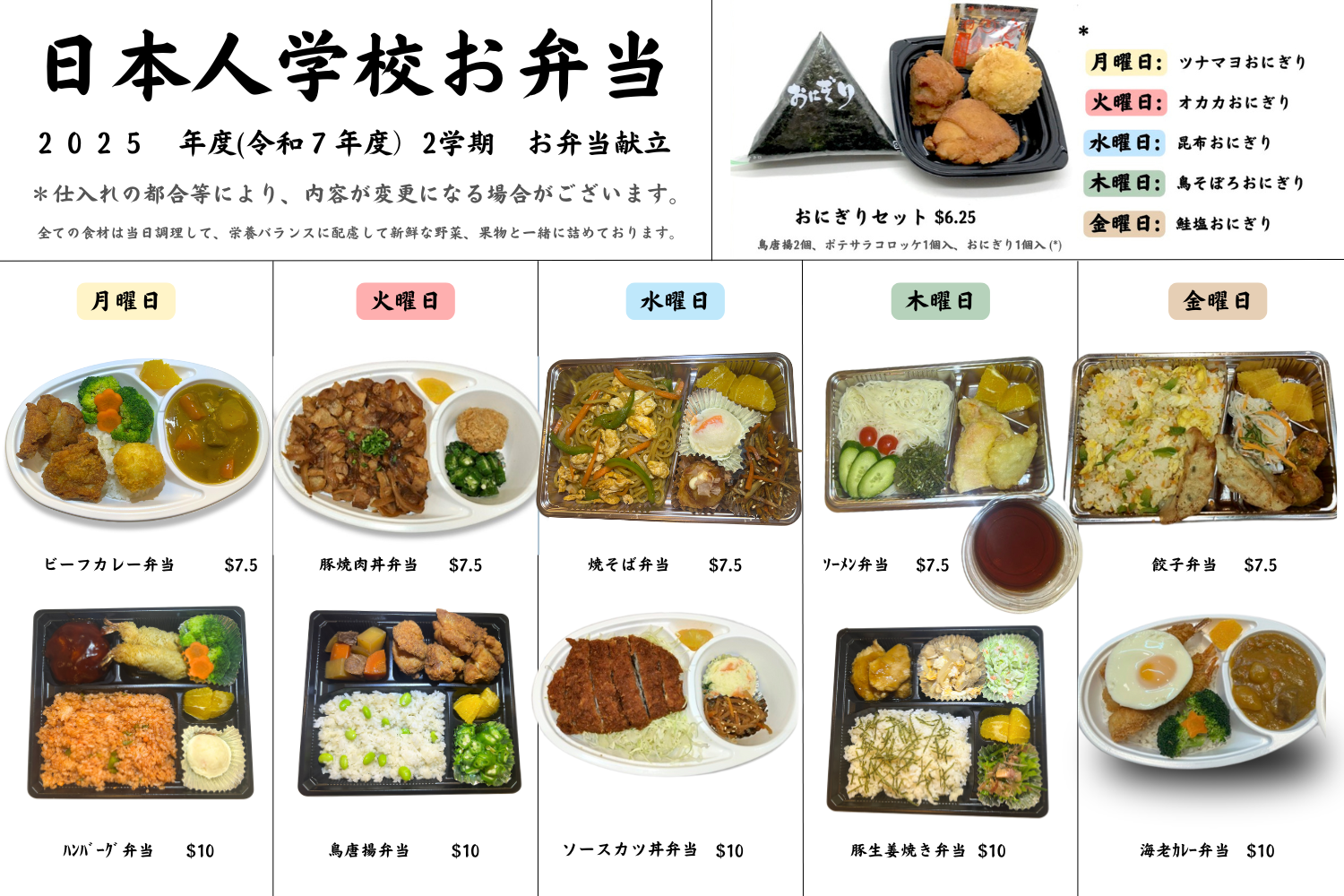 上記お弁当予定表をご参照下さい